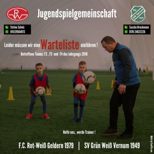 Leider müssen wir einen Aufnahme-Stopp für verschiedene Jugendmannschaften ausrufen. Betroffen hiervon sind die F2, F3 und F4 des Jahrgangs 2018. Es klingt wie ein Luxusproblem, aber aktuell möchten mehr Kids in unseren Teams spielen, als wir über Trainer und Betreuer abdecken können. Daher müssen wir leider auf Wartelisten zurückgreifen.